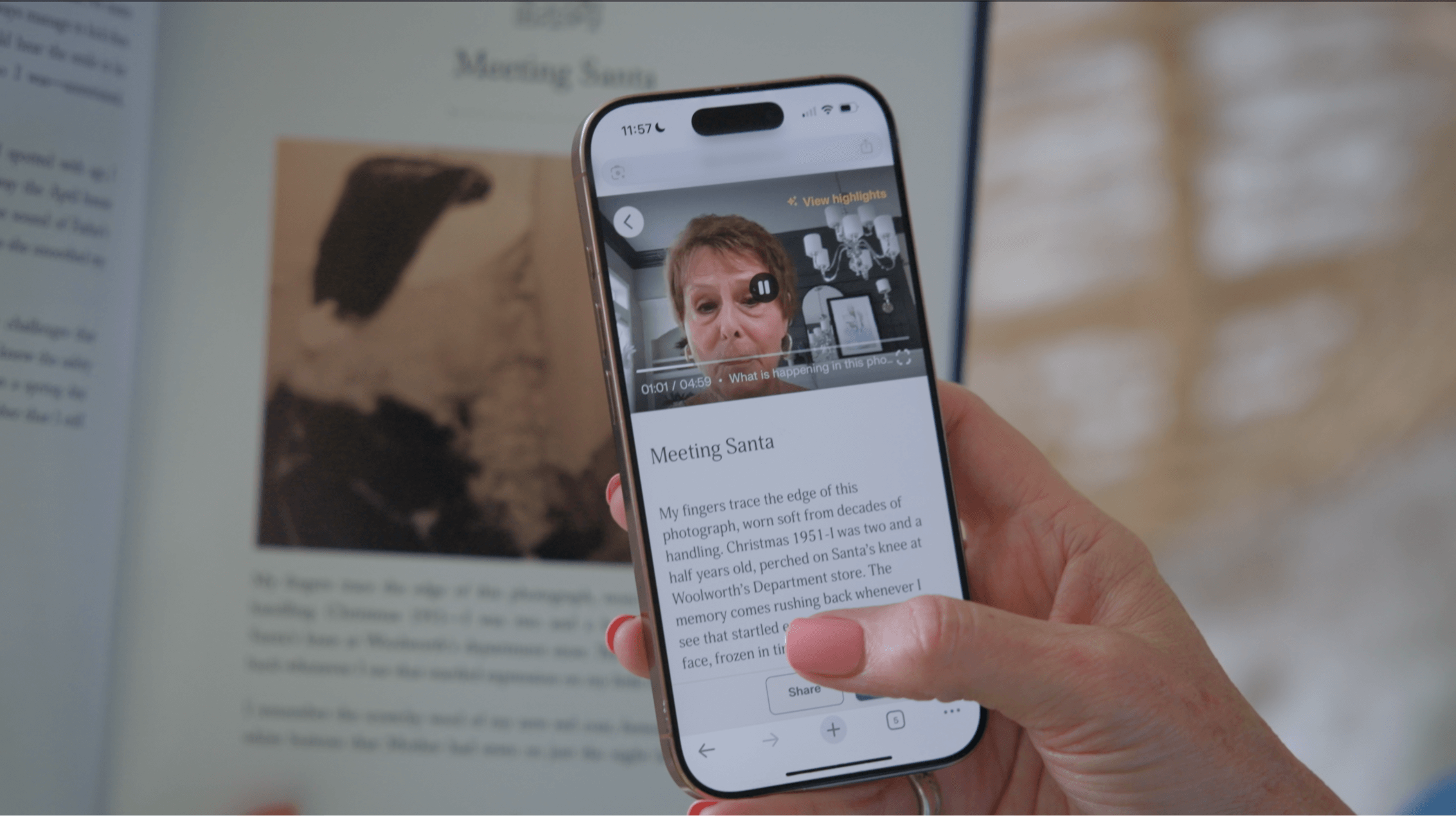 Remento: Creates a full-color, customizable hardcover book that includes both the beautifully written stories and QR codes linking directly to the storyteller’s actual voice recordings. Readers can scan any page to hear the person behind the story — preserving tone, laughter, and emotion alongside the words.