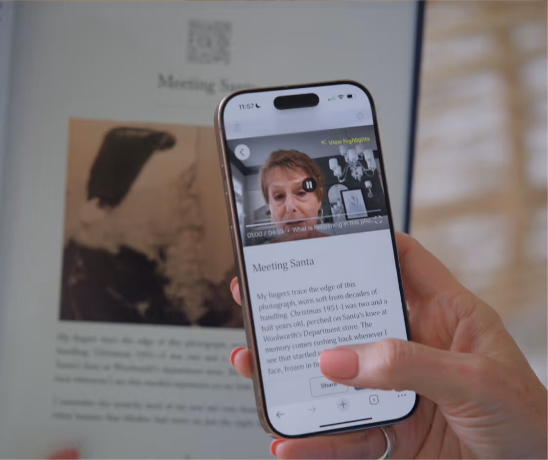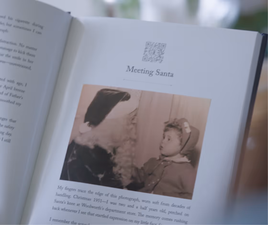 Stories in print are meaningful. Hearing them in their own voice is unforgettable. Each chapter includes a QR code that links to the recording, so you can listen back long after the moment has passed.