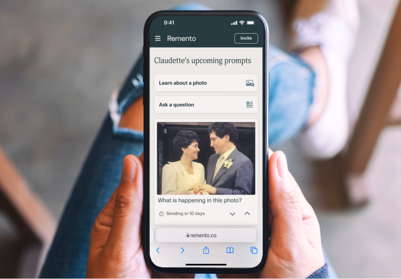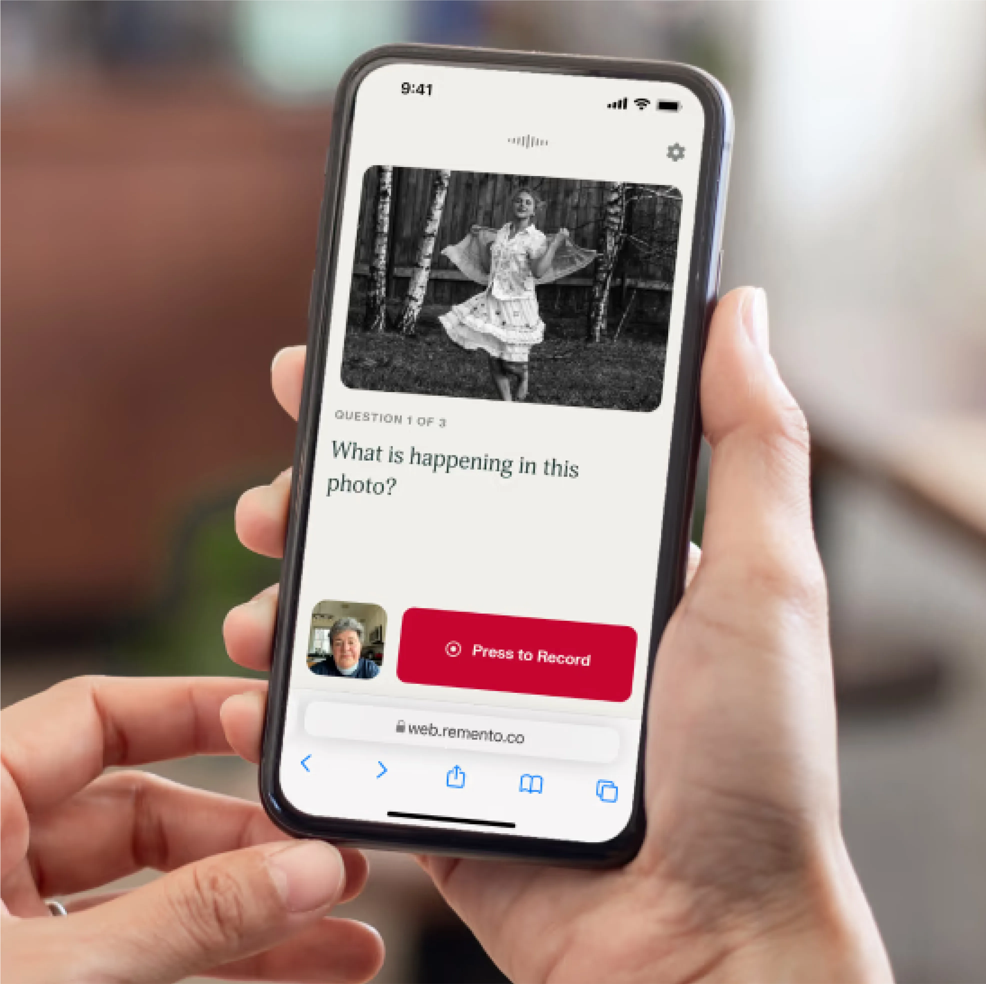 Remento turns your spoken answers to new questions each week into a personalized keepsake book of stories for generations to cherish.