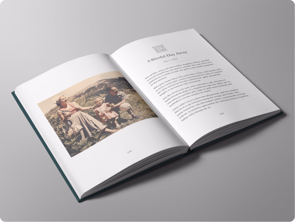 A year of weekly storytelling prompts that transform your spoken memories into a beautiful hardcover book.