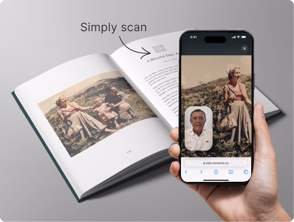 At any point during your year-long subscription to Remento, you'll have the chance to turn your written stories and photos into a book. Your purchase includes one color-printed book, and additional copies can be ordered for a fee.